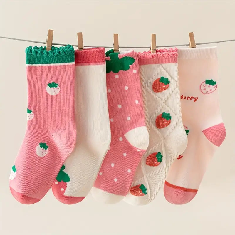 par de medias de punto con lindos patrones para niñas, cómodos, transpirables y suaves hasta la pantorrilla para usar al aire libre para niñas